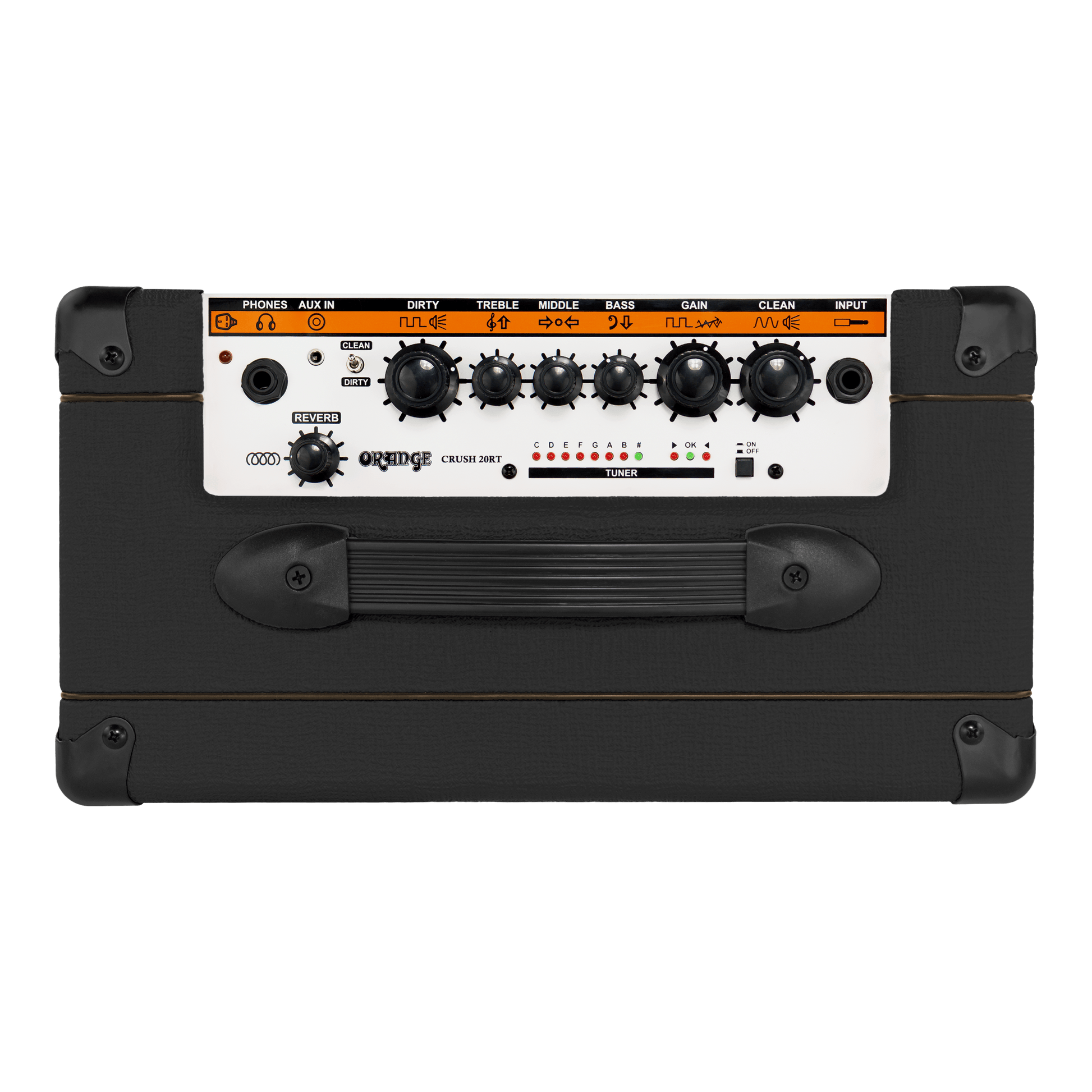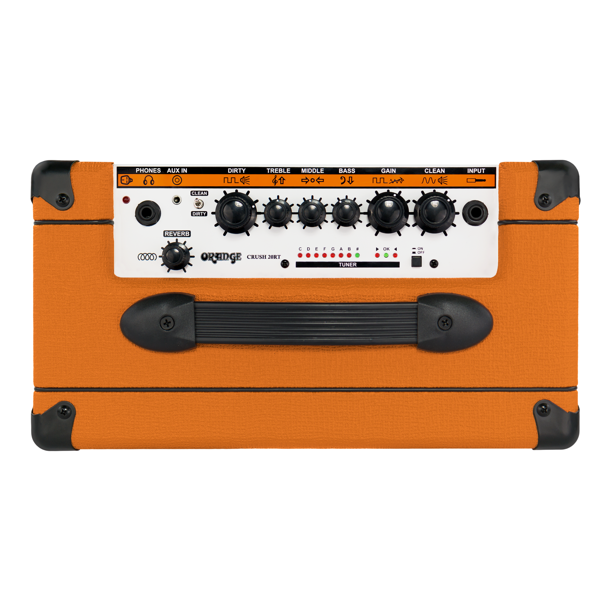 The Crush 20RT builds on Crush 20’s awesome tonal platform and takes the feature set even further. An on-board chromatic tuner is a handy addition, whilst the amp’s digital spring reverb adds a lush third dimension to any sound.